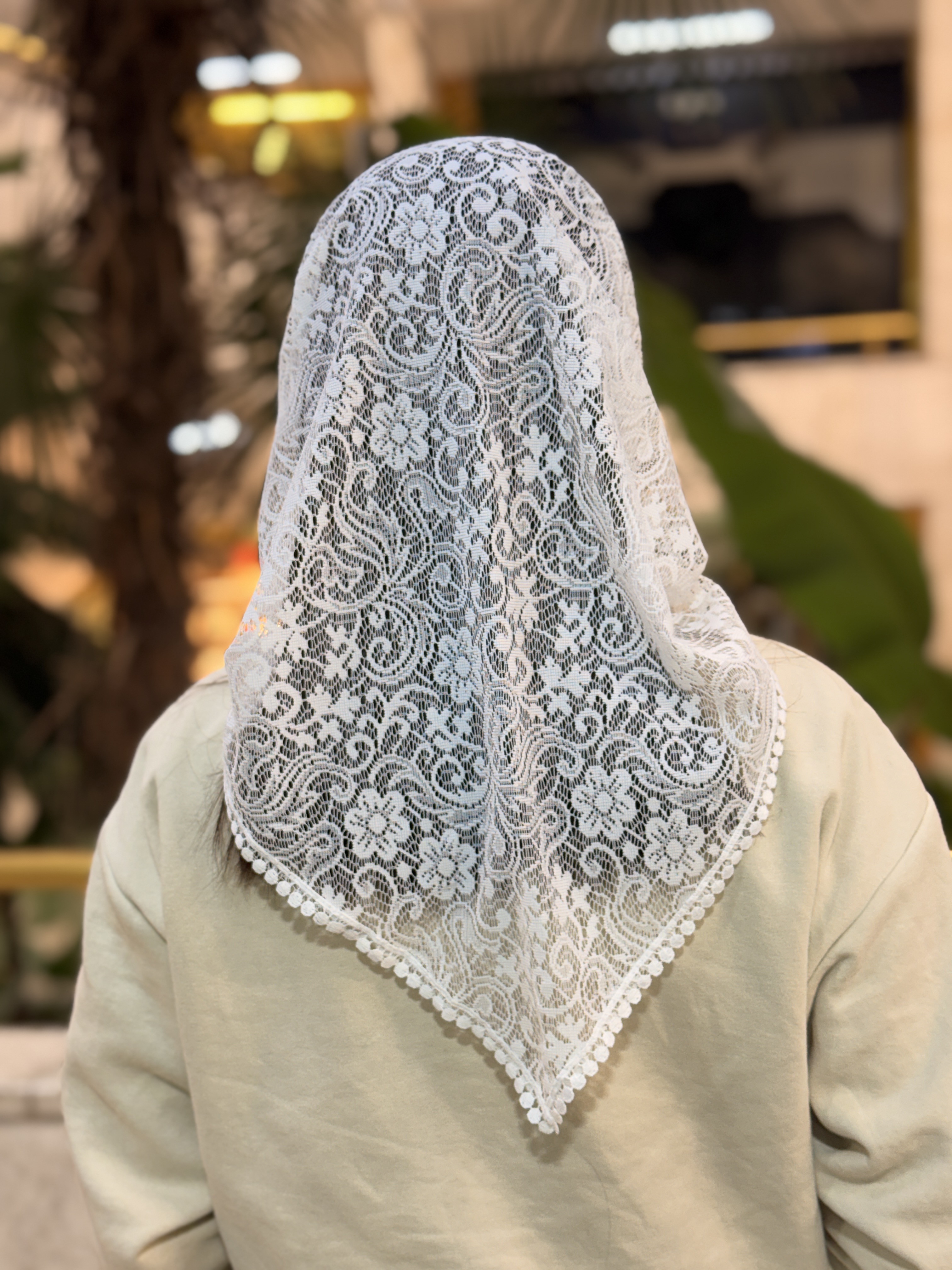 مینی اسکارف توری سفید دور عدسی سه گوش قواره بزرگ زنونه خوشگل کیوت